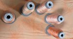 A Chrysanthemum design, a shade lighter and a shade darker than the background of a pretty peach color. You could choose from a smorgasboard of Glide thread, from Sunkissed Pea, Grapefruit, Peach, Strawberry Blonde, and Sherbret is delightful as a lighter coloe